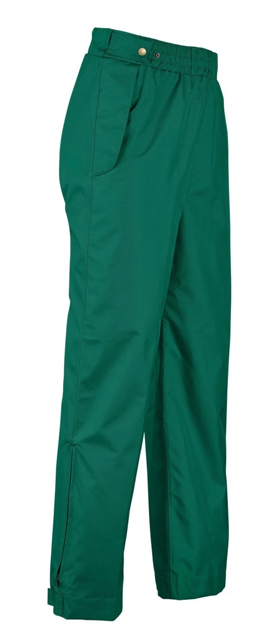 Regulerbar linning bæltestropper to sidelommer, lukkes med trykknap lange lynlås på benene som gør det nemt at tage regnbukserne på iført sko/støvler justerbar benvidde