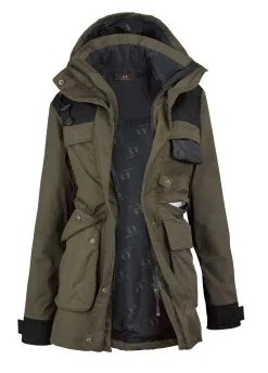 Vesten er åndbar og lydløs, har to udvendige lommer, en stående krave samt en robust lynlås foran. Ærmernes åbninger, kraven og lynlåsen er forsynet med alcantara-trim.