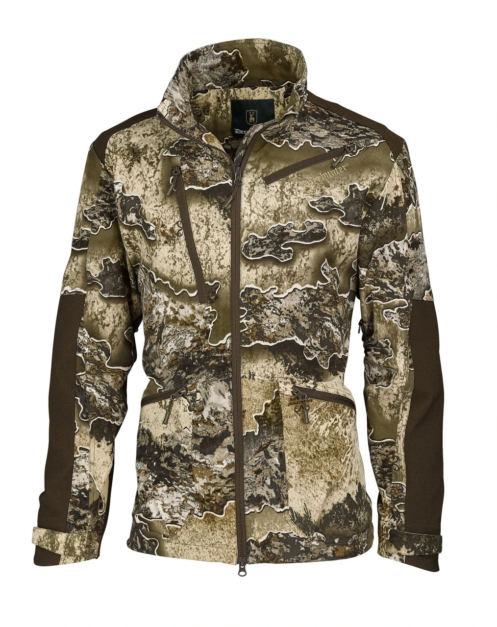 Deerhunter herrejagtjakken Excape Light er udstyret med en brystlomme, en radiolomme på brystet med elastisk løkke til antennen og to forlommer, alle med lynlåse.