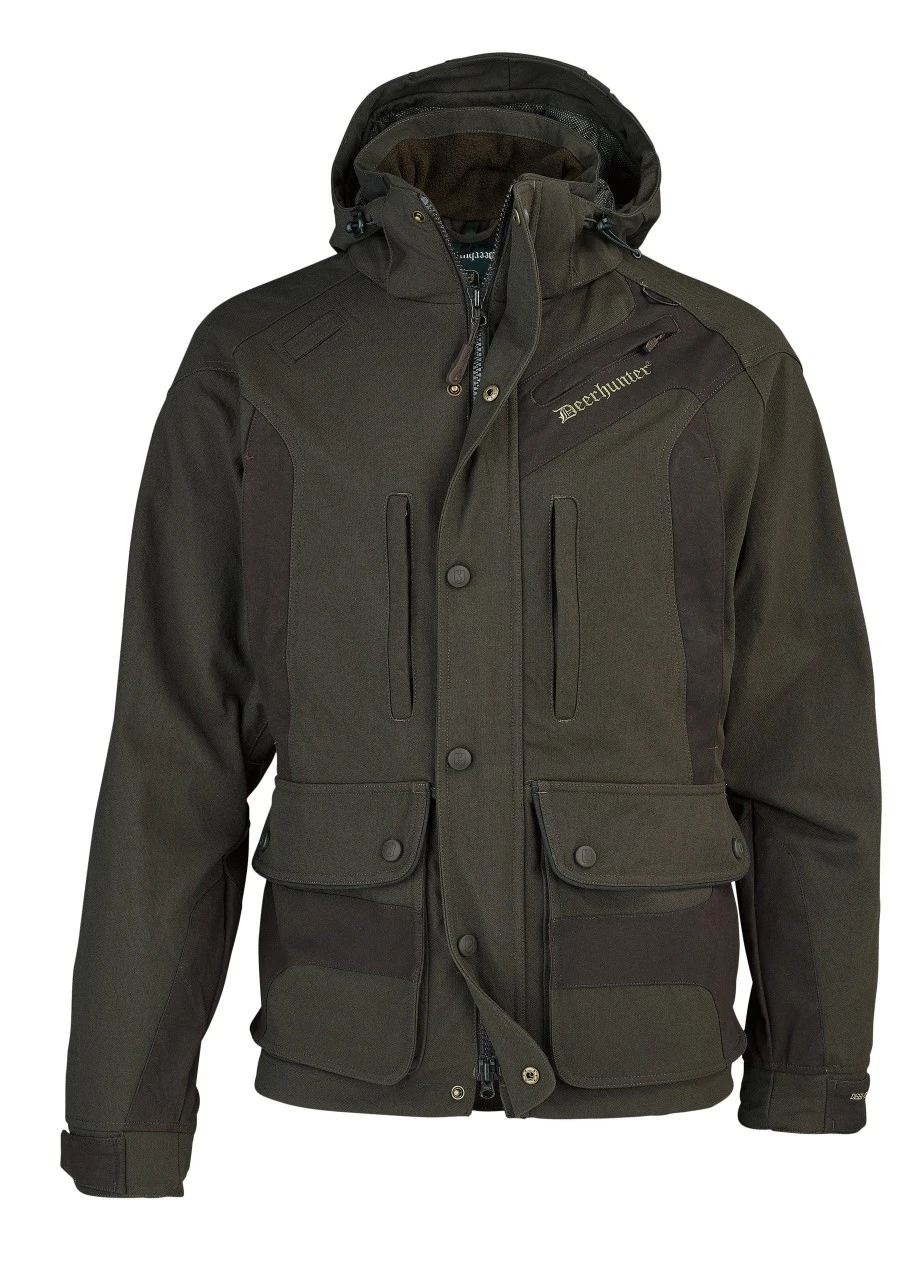 For at sikre, at du er optimalt udstyret til jagten, har Deerhunters herrejagtjakke Muflon Extreme 13 lommer: to rummelige forlommer med trykknapklap og en åben sidelomme bag hver samt en radiolomme med elastisk løkke til en antenne. Desuden fire brystlommer med skjult lynlås, den ene med en rengøringsklud, en vildtlomme med skjult lynlås og tre store inderlommer med lynlås.