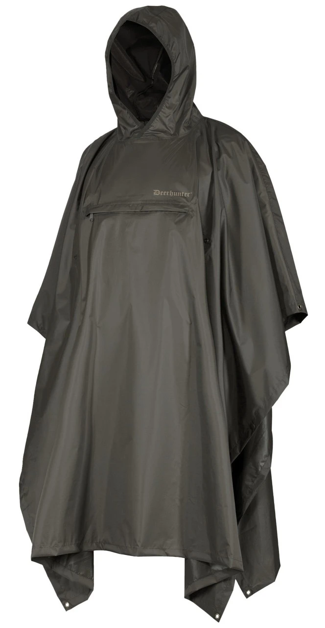 Deerhunter poncho Survivor er den perfekte allround beskyttelse til alle jagtanledninger. I vores skiftende vejr skal mænd og kvinder altid være veludstyrede. Den generøst tilskårne poncho har svejsede sømme og er vindtæt, vandtæt og åndbar takket være den laminerede Deer-Tex Performance Shell-membran. Den svigter dig aldrig ude i regnen på noget tidspunkt af året.