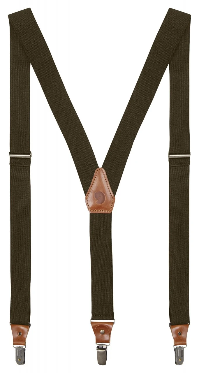 Fjällrävens individuelt justerbare seler, Singi, består af robuste elastikbånd med detaljer af vegetabilsk garvet læder. Selerne er lette at sætte fast på bukserne med metalspænder og tilpasser sig behageligt efter kroppens bevægelser.