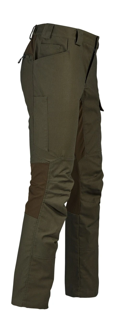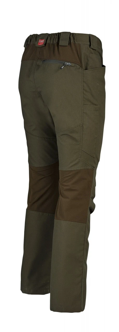Harts jagtbukser Motion-T har to sidelommer og en knivlomme. Desuden har de en ekstra lille sidelomme, en lårlomme med skjult YKK-lynlås og en baglomme med YKK-lynlås.