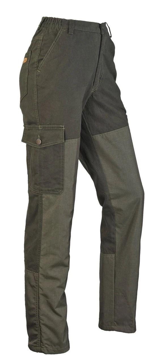 Komfortable damebukser med komplette, vandafvisende og robuste Cordura-besætninger foran og bagpå læggen. Komfortlinning med elastisk indsats, to stiklommer, en stor klaplomme med en ekstra knivlomme og to baglommer.