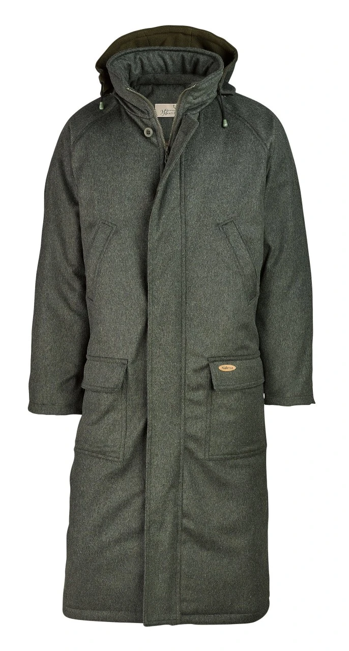 anstands-jakke til kolde dage og stjerneklare nætter. Med meget varm, vatteret foring og strikkede manchetter på ærmerne. Tovejs lynlås. To fleece-forede håndvarmerlommer. to store materialelommer med klap og indvendig sikkerhedslomme med lynlås. Fleeceforet hætte, der kan lynes af.