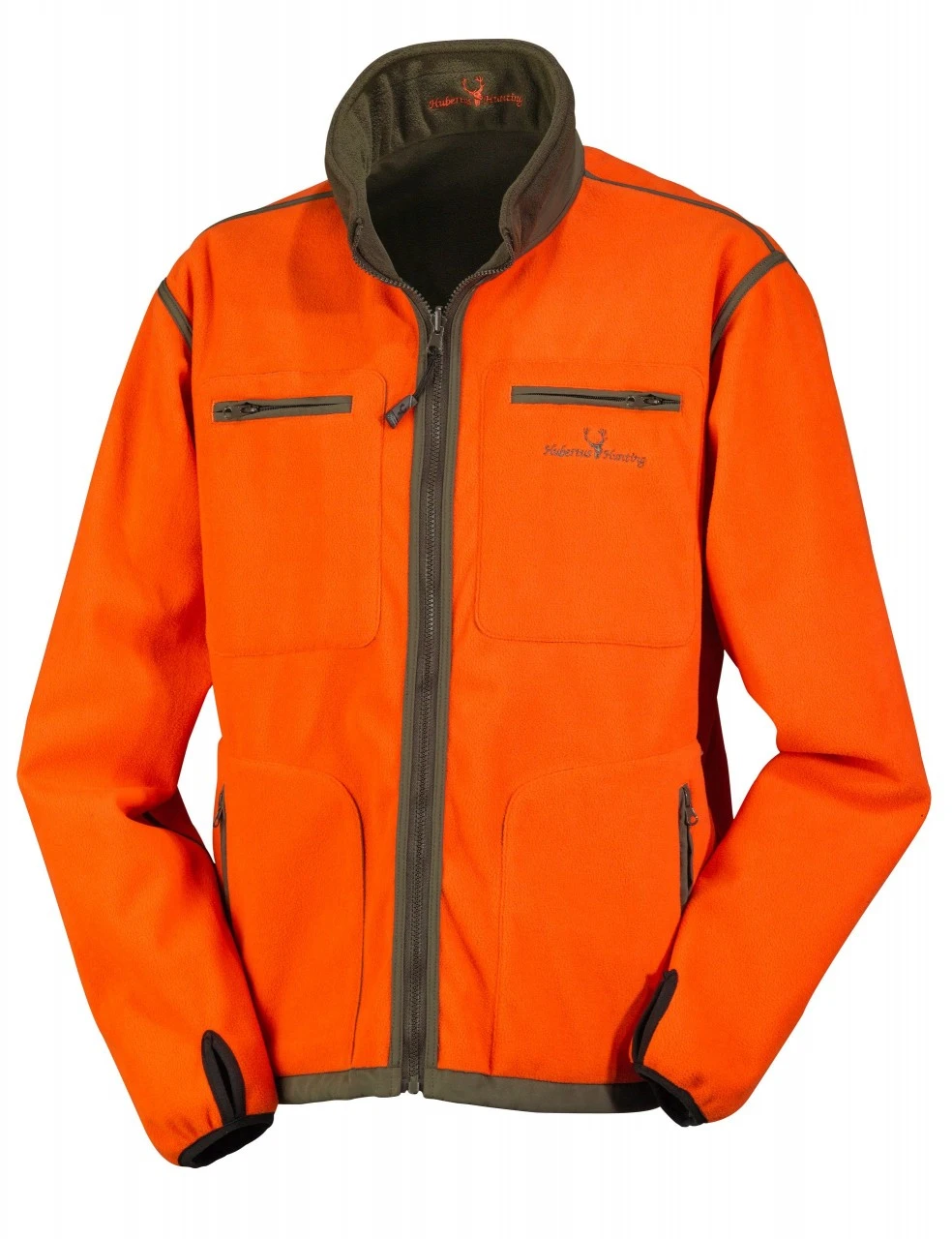 Jagt-allrounderen er lavet af kvalitetsfleece – den ene side i orange og den anden i jagt-oliven. Høj krave med robust lynlås. Begge sider har to bryst- og to sidelommer, alle med lynlås Elastisk trim på ærmerne – med tommelåbninger. Kan justeres i linningen.