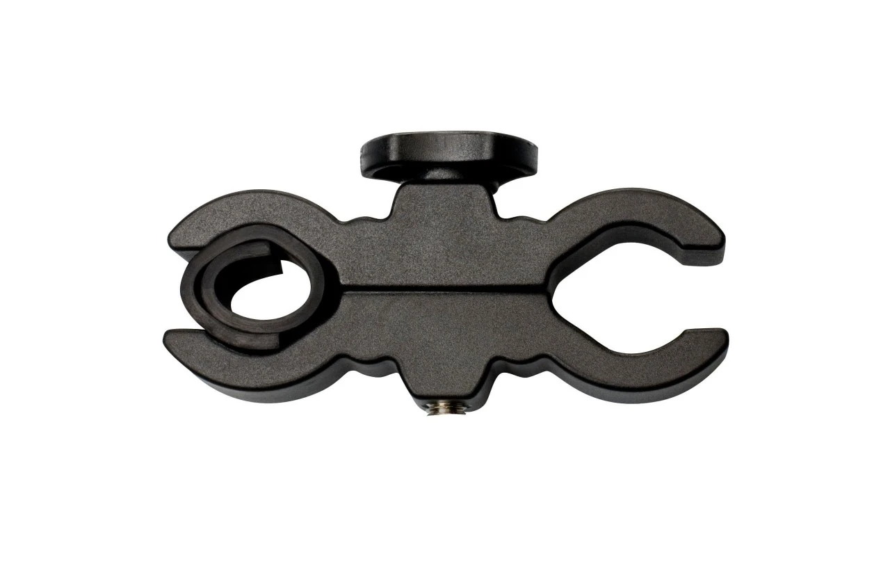 Universalholder til lygter med diametre mellem 25 og 34 mm. Passer til teltstænger, kamerastativer eller fiskestativer. Af brudfast plast.