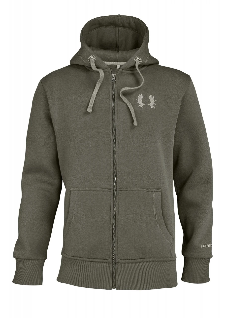 Nordforest Huntings sweatjakke er en klassisk hættetrøje i jakkeform med et lige snit, og den fremstilles bæredygtigt af ren økologisk bomuld. Med den ekstra blødt børstede inderside er sweatjakken særlig varm og behagelig at have på, mens det moderne broderi med Nordforest Hunting-logoet ser rigtig godt ud. Med Nordforest Huntings sweatjakke er du altid behageligt klædt på på jagt og i hverdagen!
