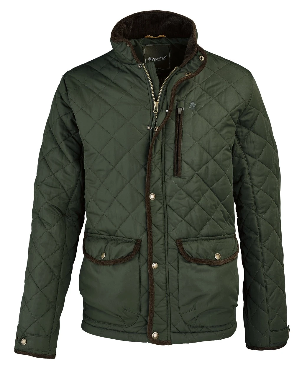 Pinewoods herredynejakke Nydala Classic er udstyret med to lommer med klap foran med trykknapper, hver med en stiklomme under. Dertil kommer en brystlomme med lynlås og to inderlommer med lynlås.