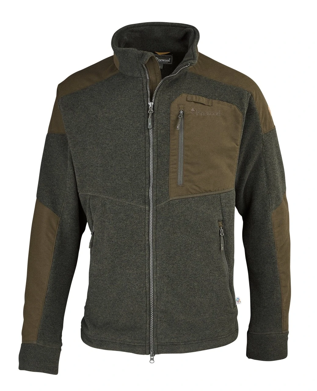 Den bæredygtige Pinewood-herrefleecejakke Småland Forest får det bedste ud af genbrugt polyester: Den er let at have på og samtidig behageligt blød, varm og med stor komfort. Samtidig har den funktionelle uundværlige egenskaber, som er en fremragende hjælp under jagt og også under udendørsudflugter og fritidsaktiviteter.