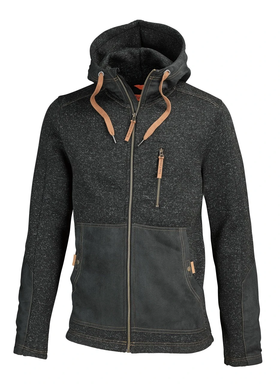 Tom Collins-jakken til mænd i strikket fleece med hætte er udstyret med en brystlomme med lynlås og to kængurulommer med trykknap og klap.